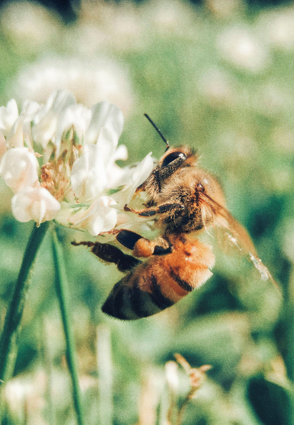 Im Frühling finden die Bienen viele bunte Wiesenpflanzen und Wildkräuter, aus deren Nektar der Blütenhonig hervorgeht.